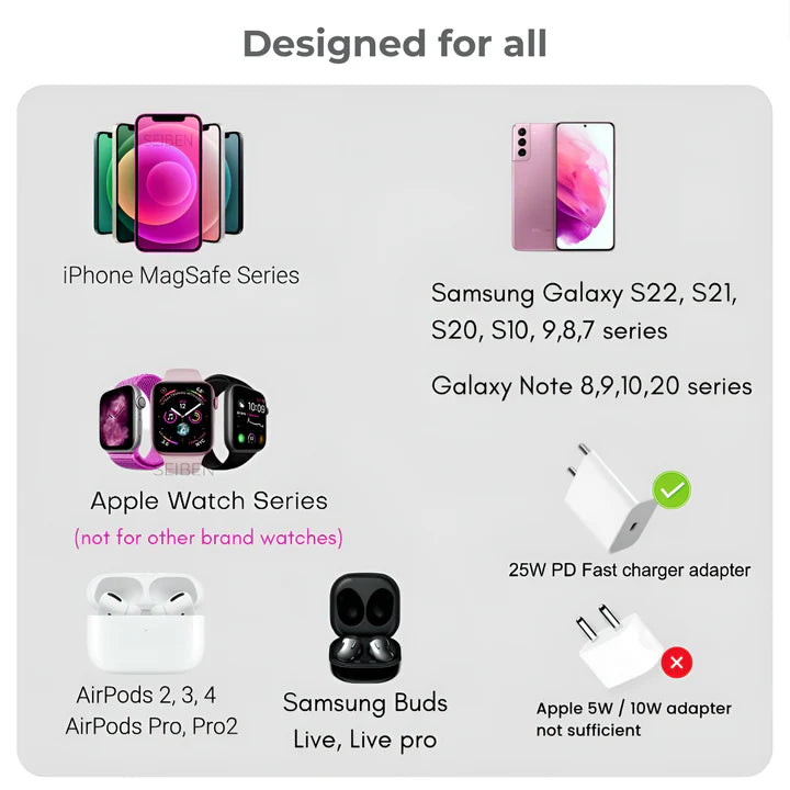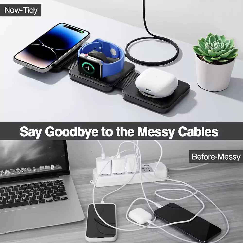Say goodbye to cable chaos. Power up your iPhone, Apple Watch, and AirPods — all at once — with this sleek, foldable wireless charging station designed for your fast-paced lifestyle.